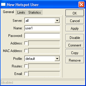 گزینه setup یک ویزارد ساده برای راه اندازی سرور Hotspot ایجاد می کند.در صورتی که هنوز سرور را راه اندازی نکرده اید می توانید از این گزینه استفاده کنید.این گزینه تمام اطلاعات لازم برای راه اندازی را از شما سوال کرده و در نهایت سرور را راه اندازی خواهد کرد.